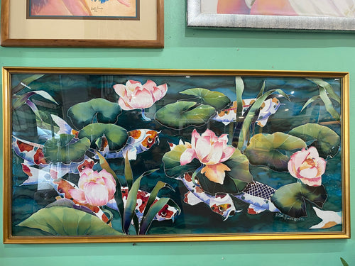 Koi Self Framed Silk w/ gold frame K. 24X47